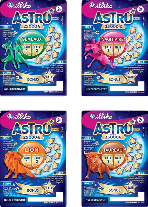 « Découvrez 2 symboles [élément correspondant au signe du ticket] sous l’étoile filante pour remporter le gain associé »