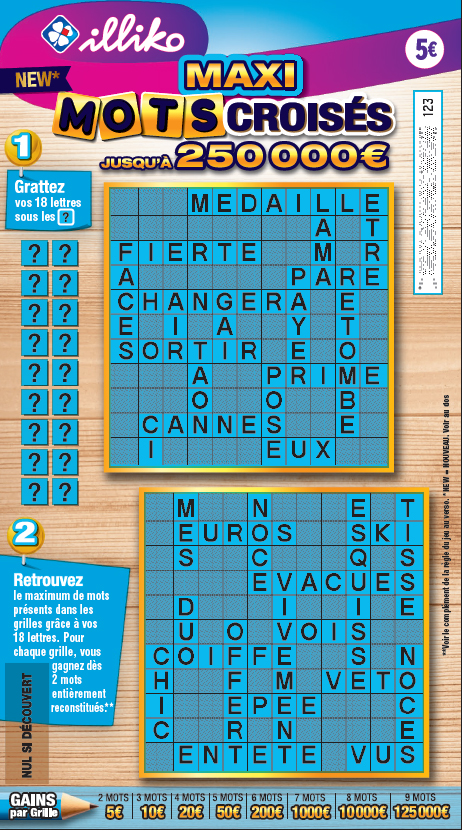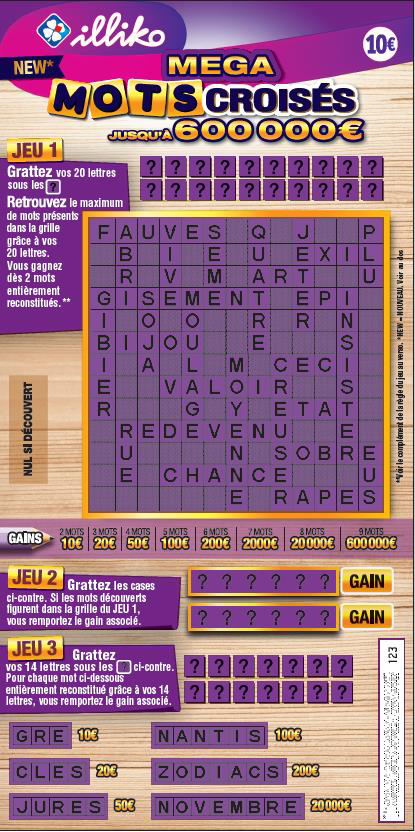 Les 3 grilles de la version actuelles sont remplacées par une seule grande grille avec plus de lettres à gratter. Le joueur gratte ses 20 lettres et tente de reconstituer le maximum de mots dans la grille grâce à ses 20 lettres.