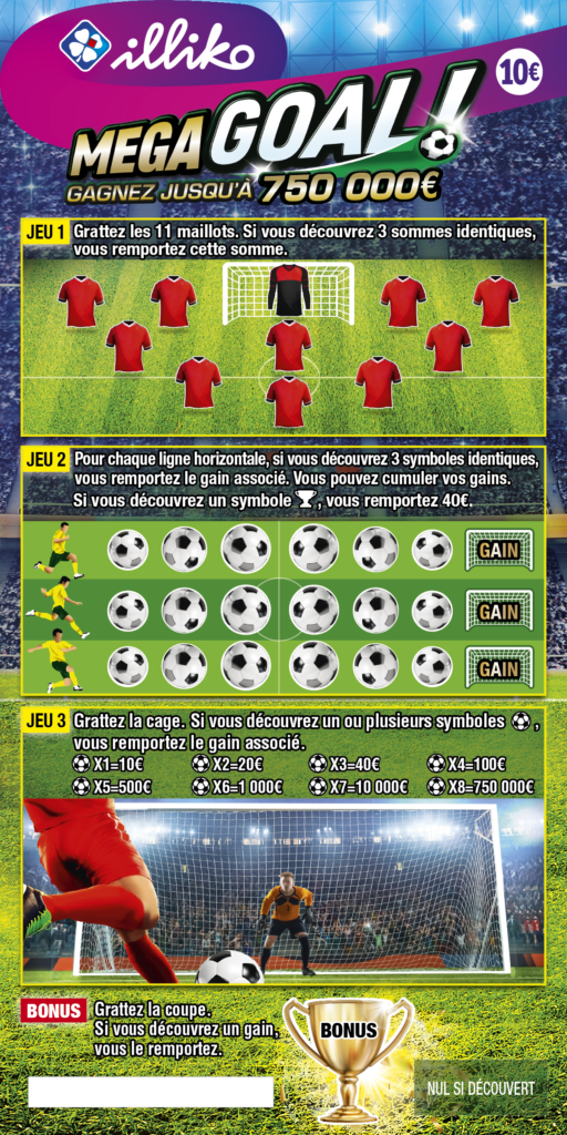Le joueur doit gratter les 11 maillots. S’il découvre 3 sommes identiques, il remporte cette somme.